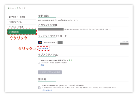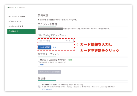 お支払いカードを変更する場合、会員サイトのマイページよりお手続きいただけます。
